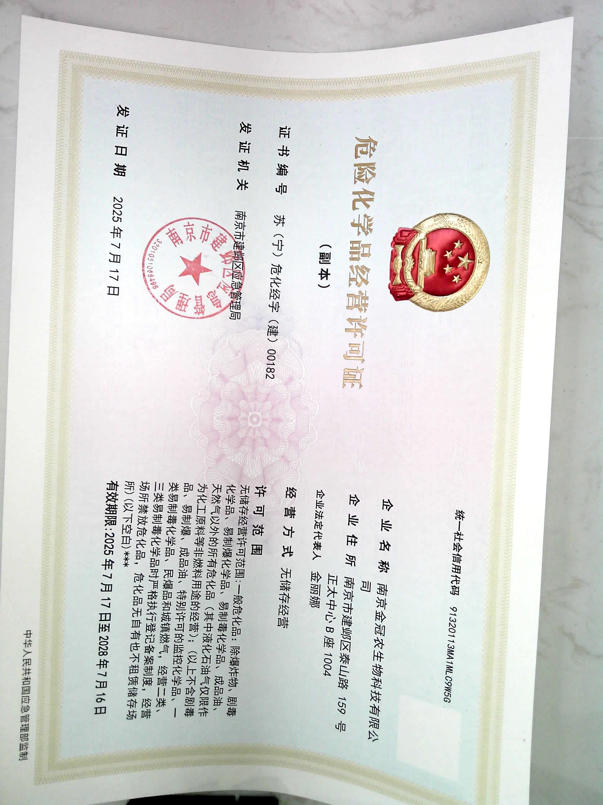 信息名称: | 危化品经营许可证 | ||