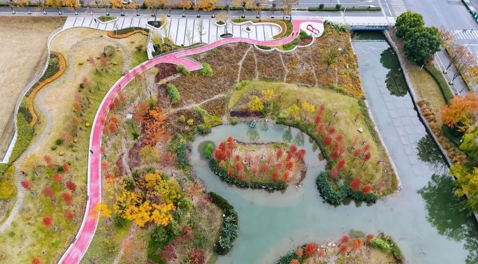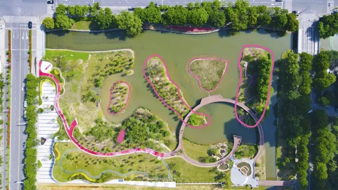 近日,爱情湾生态公园荣获“江苏省生态学会生态科学技术三等奖”。爱情湾生态公园位于建邺区螺塘街与永初路交叉口,面积约15000平方米,是江苏首个以“爱情”为主题的中心城区小微湿地生态公园,于2024年5月20日正式开园。 爱情湾生态公园以“小湿地、大生态”为建设目标,充分利用现有地形地貌,创新设置了核心保护区、缓冲保护区和游人休憩区三大区域。 核心保护区,意在保护在此落户的鸟类。按照鸟类专家建议,公园中心设置了无人岛,无人岛与周边园路最近距离不少于25米,区域内不设灯光照明系统。除用水域将无人岛与周边环境分割外,在无人岛周边建设较高的岸坡,形成隔声和避光屏障,以免侵扰鸟类。 缓冲保护区,意在保护昆虫、植物、两栖动物和鸟类。该区域包括部分螺塘河水域、公园内大部分湿地以及种植秤锤树、南京椴、流苏树等国家保护植物和花海的部分岸坡,并设置了栏杆物理隔离,保证游人方便观察的同时,保护区域内动植物的生活空间。 游人休憩区,为游客提供休闲场所。公园东侧设置市民广场,广场与无人岛间距离较远且设有高坡隔声,有效保护了无人岛内鸟类的栖息;北侧高地设置阳光草坪,满足游客露营游乐需求;西侧小岛相对静谧,打造了近距离观鸟赏鱼的亲水空间。 据了解,爱情湾生态公园是首个落实南京市人大《加强生物多样性保护的决定》中关于在城市绿化中推广种植乡土适生、适地植物的项目。 在设计过程中,通过以生态结构为规划结构、强化内部生态分区、与区域生态结构连续、组织生态流循环来实现小微湿地功能,建立具有生物多样性保护功能的城市节点,恢复有保护价值的物种种群及有机组织生态功能与游憩功能。 越来越多的鸟类选择在爱情湾生态公园安家,今年8月,几只小黑水鸡在此诞生,“爱情湾”顺利结下“爱情果”,为这片水域添上了几分生机与希望。“爱情湾”通过翡翠之心、爱心岛、爱情轴线、爱情长廊等设计,营造了充满爱意的美学空间。公园最大的亮点是从北向南的航拍视角看,小岛、湿地和陆地,组成了汉字“心”;从南向北看,又组成了“I❤U”的形状。 “永结同心”打卡地位于螺塘路与永初路交叉口,装置上带有“LOVE”“但愿人长久”字样,并且,从上方看,该打卡地是一个爱心形状,构思十分巧妙。