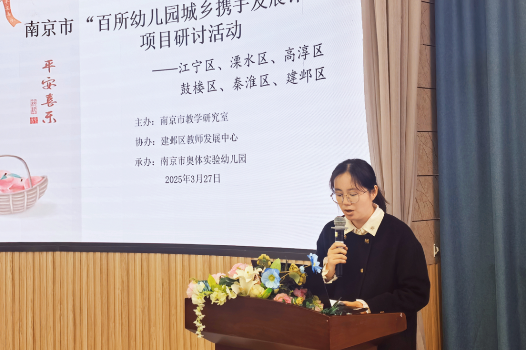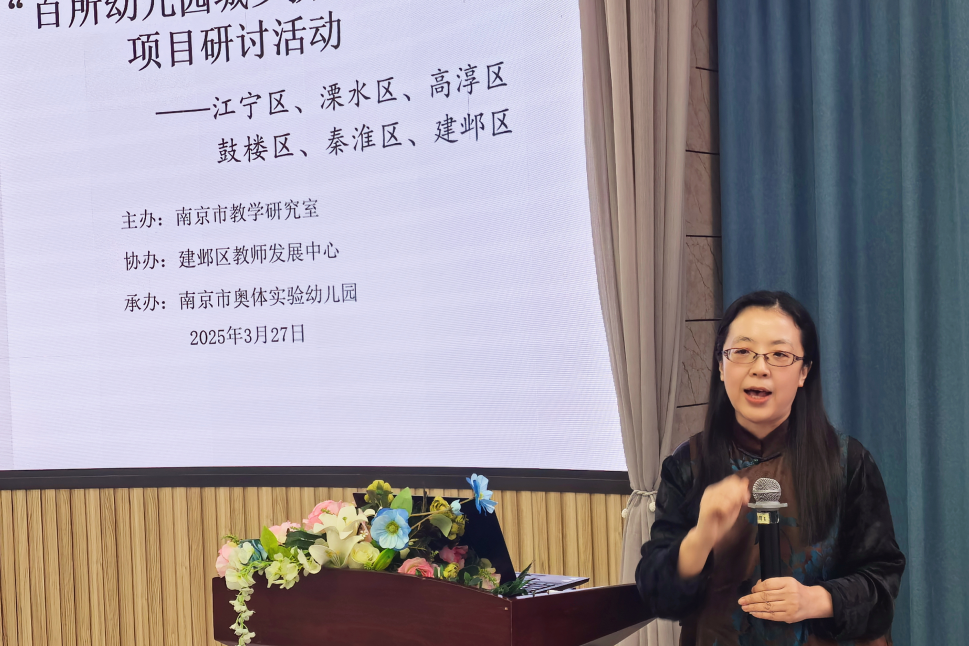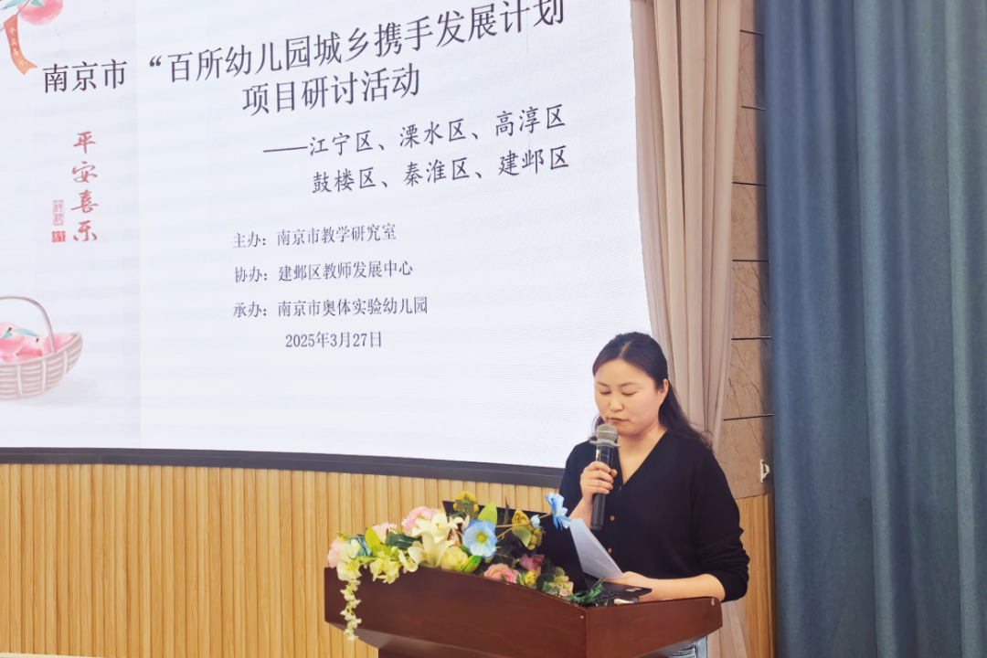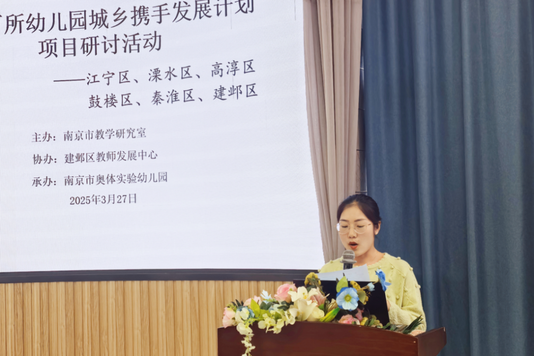 为深入推进南京市 “百所幼儿园城乡携手发展计划”,3 月 27 日,南京市 “携手发展” 项目研讨活动在南京市奥体实验幼儿园顺利举行。 出席本次活动的领导和嘉宾有:南京市教育局原处长、南京市“百所幼儿园城乡携手发展计划”项目指导专家吴邦俐,南京市教学研究室幼教教研员俞洋,建邺区教育局四级调研员陈国庆,建邺区教育局学前教育管理中心科长吴丹,建邺区教师发展中心副校长徐静,建邺区教师发展中心幼教教研员彭云,建邺区教师发展中心幼教教研员张蓉,南京市奥体实验幼儿园党支部书记、园长吴兴莉,以及来自建邺区、鼓楼区、秦淮区、江宁区、溧水区、高淳区六个区县的教研员及携手发展项目的建设园、共建园的园长和老师。 高位引领规划项目建设 活动开始,建邺区教育局四级调研员陈国庆为本次活动致辞。 南京市奥体实验幼儿园园长、江苏省特级教师吴兴莉进行《“订单式”共建·赋能教师专业化发展》园所共建经验分享。 园所观摩共探游戏现场 大家共同走进南京奥体实验幼儿园游戏现场,观摩了幼儿园共享课程资源、共研主题活动、共探儿童游戏的鲜活教育现场。奥实幼既充分利用了奥实幼的本地资源例如小黄鸭戏水池、咕噜牛柴火灶、托马斯小火车等,又深度挖掘了高淳的文化资源例如河蚌精、舞龙、捉尾巴等,极大地拓展了幼儿园的课程资源,丰富了幼儿园游戏活动的开展。 区域经验夯实项目基础 观摩活动结束后,来自秦淮区、鼓楼区、建邺区的教研员进行区域共建经验分享。 01《在联动中共研并进——区域推动城乡携手项目的实践路径》秦淮区教师发展中心 周洁 02《“五个力量”支持幼儿园城乡携手迈向优质》鼓楼区教师发展中心 田杰 03《从“碎片化”到“系统化”,齐思共研续成长》建邺区教师发展中心 彭云 园所经验具化项目内涵 2025年申报成功的八家项目建设园针对项目研究现状及教研困惑互相交流,大家各抒己见,进行了深入的思考和交流。 最后,南京市教学研究室幼教教研员俞洋对活动进行点评,她指出希望大家通过参观活动现场、学习先进经验、研讨本园特质等,逐步聚焦项目建设切口,寻找项目着力点,深耕项目内容,实现各美其美、美美与共。 项目研讨会在美好、温馨、和谐的氛围中圆满落幕。活动不仅为各区教研员、各园所提供了生动的项目共建现场,同时也启发了城乡教育协同发展的创新思路,逐步形成“以城带乡、优势互补”的实践共识。