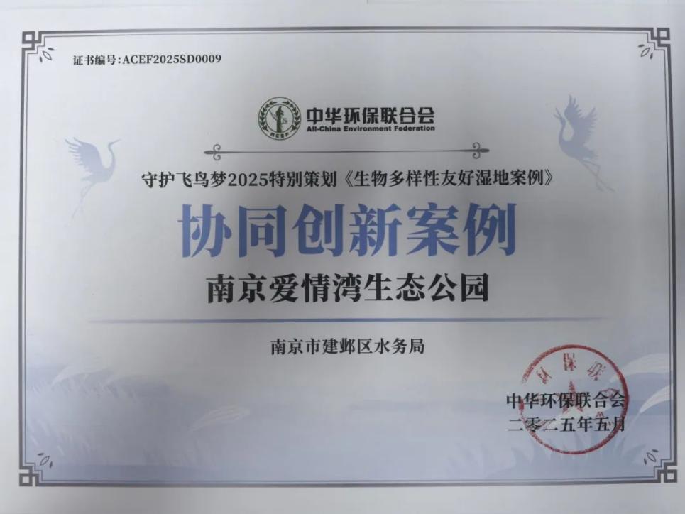 5月20日是一个充满浪漫色彩的日子,也是爱情湾公园开园一周年的日子。不久前,这座公园刚刚在第十七届全国水科技大会上获得“协同创新案例”榜首的殊荣,成为名副其实的“国家级浪漫地标”。 生态修复的“爱情答卷” 在刚刚闭幕的第十七届全国水科技大会上,建邺区“爱情湾生态公园”凭借卓越的生态治理成效,荣登大会发布的《生物多样性友好湿地案例》“协同创新案例”榜首。这座将科技与浪漫完美融合的生态公园,正成为“5·20”告白日最独特的打卡胜地。 作为长江流域生态修复的典型样本,爱情湾公园交出了一份令人惊艳的“成绩单”:底泥净化率稳定达到65%以上,水体透明度提升28%,关键水质指标实现跨越式提升。更令人惊喜的是,公园生物多样性呈现爆发式增长,本土植物种类从12种增至82种,鸟类种群由6种增至17种,其中还包括2种国家二级保护动物。 当生态遇见浪漫 公园内精心设计的16处爱情地标,让生态修复工程焕发出独特的浪漫气质。 从高空俯瞰,湿地、小岛与陆地巧妙组成了汉字“心”和“I❤U”的造型。 位于中央的“爱心岛”上,种满了花语为“爱的使者”的鸢尾花,与“永结同心”“玫瑰栈道”等景点一起,编织出一幅生态与爱情交织的美丽画卷。 从省级到国家级的认可之路 此次获得国家级殊荣并非偶然。此前,爱情湾公园已荣获江苏省生态学会生态科技三等奖,并入选长三角区域园林绿化优秀案例。这一系列认可,不仅是对建邺区“生态优先、创新驱动”发展理念的肯定,更见证了这片湿地从单一功能型向生物多样性友好型的华丽转身。