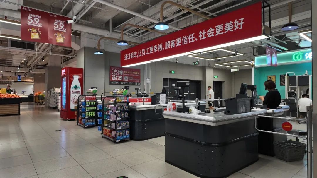 最近,永辉超市河西天街店学习胖东来自主调改已经开始。去年,永辉超市开启了走胖东来模式的品质零售路线,通过门店调改,提升商品品质与服务体验。 南京是永辉深耕全国市场的核心区域之一。最近,永辉超市河西天街店正式官宣,学习胖东来模式自主调改,并公告了具体的调改时间。 7月18—24日商品出清,7月25日起正式闭店开始调改,8月29日9:00恢复正常营业,商品出清期间,食用百货部分商品在原售价基础上进行20%~40%不等的降价出清,生鲜、烘焙商品每日正常新鲜供应。 那么,胖东来模式调改,到底会改哪些内容? 在卖场布局方面,将取消强制动线,扩大收银区域,降低货架高度,取消促销物料;放大具有烟火气的烘焙、熟食、包点区域,设置胖东来自有品牌专区,引入特色品牌馆。 在商品结构方面,将保障民生需求,补全商品功能;保留一、二线可靠品牌,优选品质与特色商品,增加进口商品,放大现制现售比例,调改后的商品结构达到胖东来商品结构的80%左右。 在顾客服务方面,将打造顾客休息区,完善洗手台、免费茶饮等超10项便民服务;湿手器、保温袋等超16项细节服务;活鲜打氧、鲜肉切丝、丰富试吃等商品服务。 在员工福利方面,普通员工月综合薪资提升30%左右,工作时间平均每日不超过8小时,入职满一年即可享受10天带薪年假;提供免费就餐,翻新或新增员工更衣室、休息室、培训室等。 如今,永辉超市河西天街店已经挂上了调改的宣传标语,不少居民前来购买出清的产品。随着这里的升级调改,建邺的消费业态将更加丰富多样,让我们一起期待吧。
