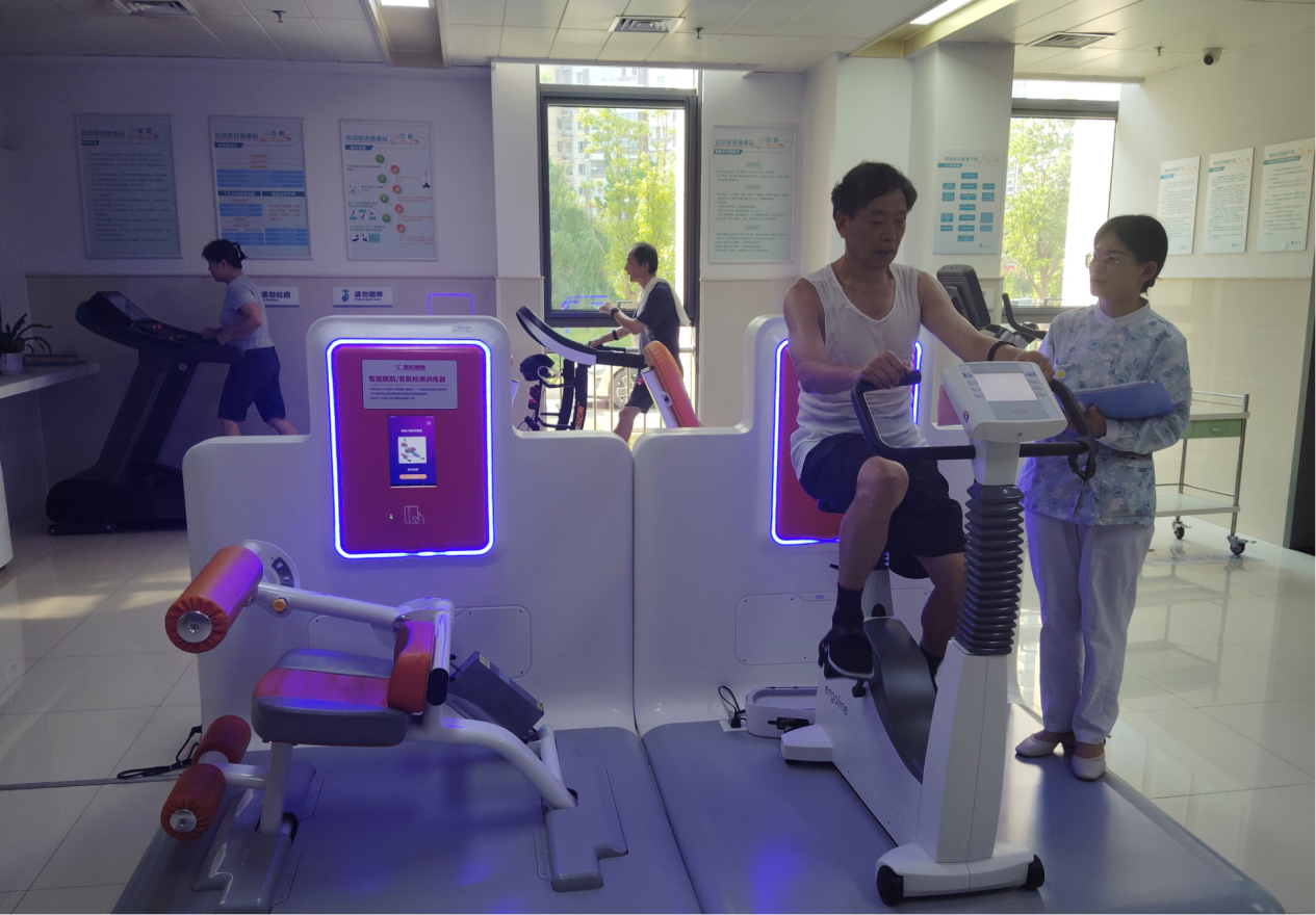 作为首批江苏省基层慢病筛防中心建成单位,南京市建邺区莲花社区卫生服务中心自2025年启动健康体重门诊建设以来,紧扣“健康中国2030”,以“智慧化体卫融合”为核心路径,入夏以来,该中心通过场景融合、数据互通、动态干预,为当地社区居民提供全周期、精准化的体重管理服务,建设推出了智慧百姓健身房。 智慧百姓健身房与运动促进健康中心深度融合,中心以“空间共同、资源共享、服务共融”为原则,将智慧百姓健身房与运动促进健康中心有机整合,构建“室内智能监测+室外场景延伸”的立体化运动健康服务网络。智慧百姓健身房与该中心深度融合,共筑健康防线,内部各功能区域和服务环节紧密融合。在空间布局上,健身房与慢病管理中心、康复区相邻设置,方便社区居民在进行运动前后能及时接受医疗检查和康复指导。如居民运动后若出现肌肉拉伤等情况,可直接前往康复区域接受专业治疗。同时,健身房的设备数据与中心的运动管理系统实现对接,居民在运动产生的各项数据如运动时长、消耗热量、运动强度变化等,能够实时同步至运动管理系统,为医护人员全面评估当地社区居民健康状况提供更丰富的数据依据。运动干预对象无需在不同场地之间奔波,就能享受到运动与医疗的一站式服务,节省了时间和精力。例如,患有慢性疾病的居民在运动前后,可随时进行身体指标监测,如:血压、血糖监测,以便及时了解运动对身体的影响,并根据检测结果调整运动干预方案。这有助于提升居民对健康管理的积极性和依从性,更好地实现健康体重管理目标。 通过百姓健身房与该中心的深度融合,为医护人员提供了更全面了解当地社区居民健康状况的机会,在居民运动过程中,医护人员可实时观察其运动表现,结合病史和日常身体状况,为居民:提供更精准的健康指导和运动干预措施。此外,这也加强了团队协作。该中心不同科室的医护卫生技术专业人员围绕社区居民的健康体重管理需求形成合力,提高了整体服务质量。