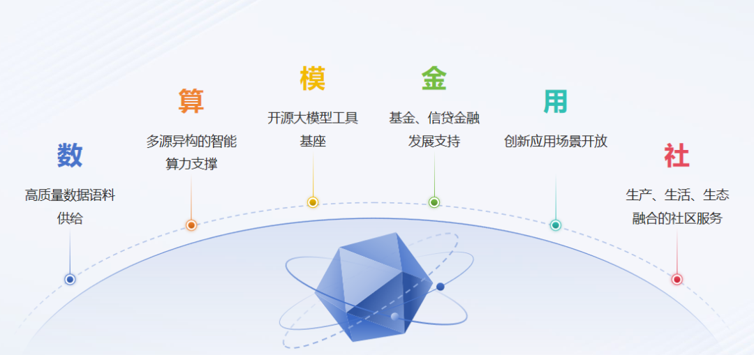 P算力+补贴直达:联合移动、联通、电信、阿里云搭建“云上智算中心”,同时引入头部算力企业,提供万P智能算力;每年发放3000万“模数券”用作补贴,实现“算力直达园区、光纤直达桌面、补贴直达账户”。