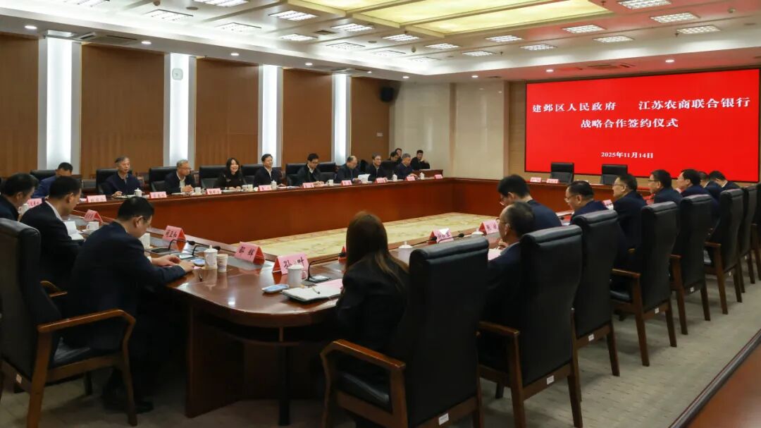 11月14日,建邺区人民政府与江苏农商联合银行举行战略合作签约协议。江苏农商联合银行党委书记、董事长胡建斌,副行长、党委委员王骏,党委委员、首席信息官、产品研发部总经理李健,党委委员、董事会秘书、党委组织部部长张斌,建邺区委书记、河西管委会党组书记姜宸,建邺区委副书记、区长、河西管委会党组副书记、主任贾晨等出席签约。 江苏农商联合银行是省内金融机构中资产规模最大、网点覆盖最广、服务客群最多的金融机构。下辖60家农商行、3316个营业网点、5.4万名员工。 江苏农商联合银行党委书记、董事长胡建斌表示,江苏农商联合银行与建邺区合作由来已久。早在2014年,省联社就将总部迁址建邺,成为最早进驻河西金融城的金融机构之一。十余年来,双方同声相应、精诚合作,在深化普惠金融供给、培育数字经济生态、提升“金融强核”能级等方面取得了一系列丰硕成果,为今天的战略合作奠定了坚实基础。站在贯彻落实党的二十届四中全会精神的新起点,此次签约不仅是对双方过往良好合作的深化延续,更是共同响应国家金融服务实体经济号召、主动融入区域发展新格局的责任担当。 建邺区委书记、河西管委会党组书记姜宸对江苏农商联合银行长期以来给予建邺发展的关心支持表示感谢。近年来,建邺区持续围绕省、市明确的发展定位,聚焦“两建成一首发”目标任务,攻坚克难,苦干实干,各项事业发展取得显著成就。全力推进河西中央科创区建设,致力于打造南京科创版图升级的“展示窗口”、汇聚顶尖创新要素的“中心地带”。“十四五”期间,全区地区生产总值年均增长5.2%,一般公共预算收入跃居全市第三,全市高质量发展考核连续四年蝉联第一等次。金融中心、数字高地成为产业标识,金融业增加值连续四年全市第一,数字经济核心产业规上企业数增长近3倍,集聚阿里、小米、京东、宝马等高能级研发中心6家,占全市三成以上。 姜宸说,建邺将以此次战略签约为契机,进一步锚定总部型、功能性、高能级金融机构集聚目标,聚力提高金融机构能级层级,厚植更具竞争力金融生态,建成更具影响力的重要金融中心核心集聚区。 会上,建邺区与江苏农商联合银行签订战略合作协议,并就金融科创中心和法人总部达成合作共识,选址建邺数智城建设联合银行金融科创中心。 此次建邺区与江苏农商联合银行的战略合作,将为建邺打造金融总部高地与产业金融(科创金融)高地提供重要支撑。双方将以江苏农商联合银行总部扎根建邺的深厚基础为纽带,发挥该行在省内金融领域的规模优势,金融科技中心赋能全省农商行数智化转型发展与行业影响力,进一步壮大河西金融城的总部集群效应,提升区域金融核心竞争力与辐射力,推动建邺成为长三角乃至全国重要的金融总部集聚标杆。同时,精准对接建邺中央科创区建设需求,让金融活水精准滴灌科创产业,加速形成“总部金融集聚赋能、科创金融精准输血、产业发展反哺金融”的闭环生态,推动建邺两大高地建设形成互促互进、能级跃升的发展格局。