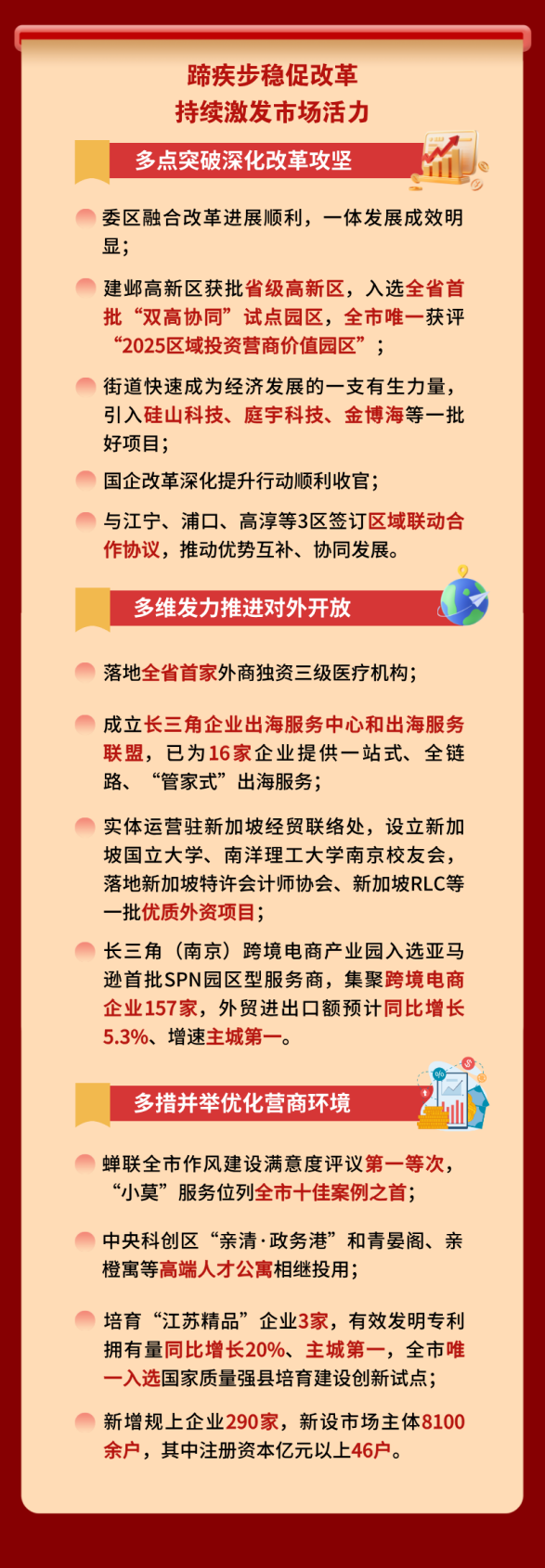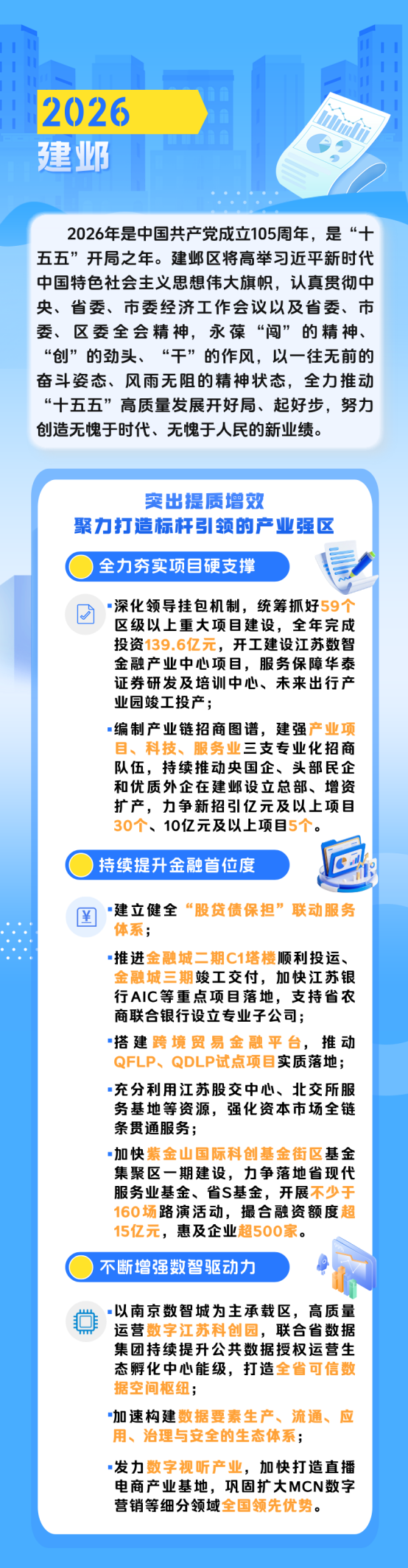 1月8日上午,南京市建邺区第十九届人民代表大会第五次会议开幕,建邺区人民政府区长贾晨代表区人民政府向大会作工作报告。2025年建邺区取得了哪些发展成就,一起来了解下吧。 2026年又有哪些重点工作任务,让我们一起来看看。