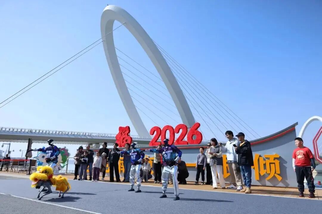 非遗AI年”核心主题,打造“科技+文化”双IP新春盛会,智能机器人现场送福字、送祝福,以充满未来感的方式点亮建邺AI新年。 区商务局联动建邺播报、华采天地共同推出“邺起创马,AI贺岁”趣味互动活动,吸引在宁青年消费者前往元通商圈打卡。 登上春晚的“顶流”宇树机器人和机器狗也组团“空降”建邺,身披新春潮服亮相南京眼景区、南京鱼嘴湿地公园。 在南京眼步行桥下,机器人身着酷炫潮服列队登场,以开阔江景为天然舞台,踏乐起舞、动作整齐划一又不失灵巧,将春晚同款舞蹈搬到江边。 游客们早早占好机位,记录下机器人与南京眼、与鱼嘴灯塔同框的科技感大片。家住建邺的张女士带着孩子,一连追了两天的表演:“第一次这么近看机器人跳舞,比电视上有意思多了!孩子特别喜欢。” 前沿科技与传统年味完美融合,成为今年春节建邺最具辨识度、最吸睛的特色亮点。 这个春节,建邺区以多元消费场景激活市场活力,以特色文旅活动丰富节日供给,以科技创新点亮新春体验,实现了城市人气、消费热度、节日氛围同步升温。 一幅幅热闹喜庆、蓬勃向上的节日画卷,充分展现出建邺强劲的发展活力、消费潜力与城区魅力。