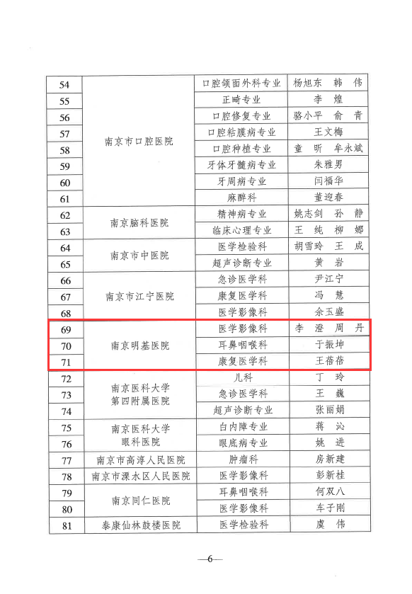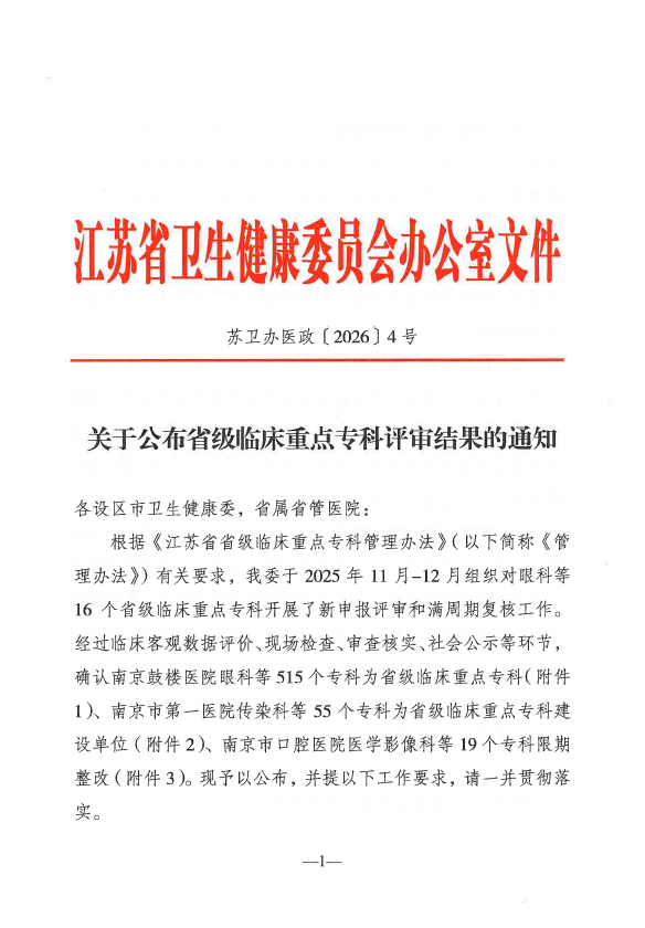 近日,江苏省卫生健康委员会公布省级临床重点专科评审结果,明基医院的医学影像科、耳鼻咽喉科、康复医学科被评为省级临床重点专科。 截至目前,明基医院获批省级临床重点专科已达6个(胸外科、肾脏内科、神经外科、医学影像科、耳鼻咽喉科、康复医学科)。 医学影像科 医学影像科为明基医院首批江苏省临床重点专科、南京医科大学研究生培养点。 科室下设头颈中枢神经、肌骨、心胸乳腺、腹部四大亚专科,由国内知名医学影像专家李澄教授领衔。 团队深耕影像专业领域,近年来斩获多项专业荣誉和奖项,主持并承担省市级多项科研项目,在国内外专业期刊发表高水平学术论文40余篇,多次被RSNA、SMRA和CCR等行业巅峰大会邀请做口头学术报告,参与多部行业标准的出版和专家共识的制订。 科室医疗质控管理水平省内领先,多次被授予省、市级放射质控示范单位和优秀单位称号。 耳鼻咽喉科 耳鼻咽喉科是江苏省临床重点专科、江苏省限制类技术培训基地、南京市基层特色科室孵化中心,建设有南京市咽喉头颈肿瘤医学重点实验室。 承担国家癌症中心喉癌质控专家委员会、江苏省及南京市耳鼻咽喉科医疗质量控制中心,以及南京市基层耳鼻咽喉科医疗质量控制中心(主委单位)的质控工作。 学科布局完善,下设耳、鼻、咽喉、头颈外科四个亚专业,以精细化诊疗与功能保全性治疗为核心特色,坚持医教研协同、创新驱动科研,多项临床研究成果达到国内乃至国际先进水平,用顶尖技术为患者提供精准、安全的健康解决方案。 康复医学科 康复医学科为江苏省临床重点专科、南京市医学重点专科,学科建设与综合实力区域领先。 科室人才济济,拥有医师、治疗师及护理人员共52人的专业团队,开放康复床位55张,硬件与人力配置充足。聚焦肌骨、神经、重症、心脏、呼吸、产后六大核心康复领域,形成了全周期、多维度的康复诊疗体系。 科室技术力量雄厚,率先开展纤维喉镜评估、心肺运动试验、球囊扩张、肉毒注射、智能机器人训练等一系列先进康复评定与治疗技术,实现精准化、个体化康复干预。 科室承担教学与社会服务职能,是江苏省及南京市工伤康复定点机构、江苏省康复治疗师规范化培训实践基地、南京市全科医师康复医疗技能培训实践基地,持续为行业输送专业人才,为社会提供高质量康复保障。