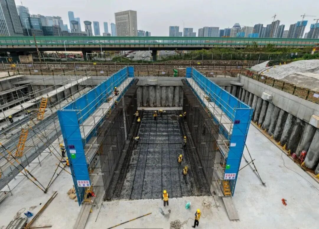 目前,规二路西延工程正加速推进,基坑主体结构完成,钢枕替换铁轨枕木完成,建邺区与雨花台区之间的一条新通道即将打开。 “每天透过窗户看着施工进度,就盼着早日完工。”金浦名城世家居民周先生正准备开车出门,他说,自己在奥体大街工作,直线距离差不多1公里。如果骑车需要近20分钟,并且还要经过铁路道口,而开车也要绕行5公里。“通车后,过个红绿灯几分钟就到了,上班时间将大幅缩短。” 现场,眼前的高坡上便是宁芜铁路线。利用铁路空窗期,数十名工人正在铁轨上忙碌着,脚下便是车流穿梭的凤台南路。 “我们现在做的是铁轨枕木和支撑体系替换程序,只有把铁轨牢牢托住,才能为下方开挖和箱涵顶推创造条件。”建设单位南京城建集团运营集团现场项目负责人梁帅介绍,工人将铁轨下道砟清出,再将重达上百斤的钢枕木穿入。通过支撑墩浇筑、横梁搭建,从而构建起托起铁轨的支撑体系。 在高坡下方,一个巨大的基坑刚刚完成浇筑成型,工人们正在搭设支架。据介绍,支架将是下一步工人的施工平台,为浇筑箱涵做准备。梁帅表示,下穿箱涵共浇筑4孔,中间2孔为双向4车道,两侧2孔分别包括1股机动车道和非机动车道、人行道。 据了解,规二路西延工程东起西春路,接东侧规二路已建成段汇入安德门大街,向西上跨地铁1号线、10号线小行联络线,经过时光澔韵、金浦名城世家小区后,下穿宁芜铁路,与凤台南路平交,利用红绿灯对接奥体大街。整个工程全长约1.1公里,目前正在实施的则是下穿宁芜铁路段。 “我们计划近期完成铁轨支撑搭建,并完成首节箱涵浇筑,5月份开始顶推。”梁帅说道。规二路西延建成后,不仅畅通片区居民出行路,还能分担软件大道、雨花南路的交通压力,并构建起雨花台区、建邺区之间的新通道,促进区域发展。