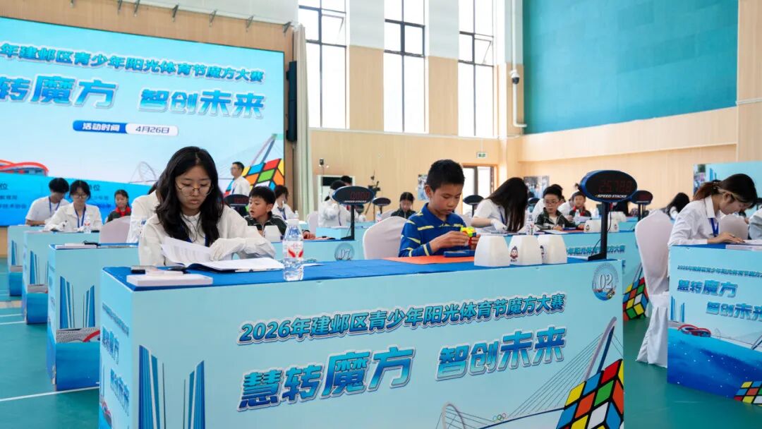 指尖灵动竞智慧,方寸魔方育新智。 4月26日下午,2026年建邺区青少年阳光体育节魔方大赛在南京青奥村外国语小学隆重举办。赛事由南京市建邺区教育局、南京市建邺区科学技术协会主办,南京市建邺区少年宫、南京青奥村外国语小学承办,建邺区妇联、建邺区关工委联合协办。 活动以“慧转魔方 智创未来”为主题,来自全区34所学校的295名少年学子同台竞技、逐梦前行,在指尖竞速中锤炼专注力,在逻辑推演中激发创新思维,充分展现建邺少年勤于思考、勇于挑战的昂扬风貌,为区域素质教育与阳光体育深度融合注入了鲜明活力。 大赛特邀全国智力运动会冠军顾释友、省智运会冠军尹星凯现场展演。二阶魔方极速复原、单手三阶流畅操作,选手们行云流水的手法、精准迅捷的判断、毫秒级的反应速度,引得全场阵阵喝彩,为参赛少年树立榜样,尽显魔方运动的独特魅力。 赛场上,小选手们全神贯注、沉着应战。大赛设二阶速拧、三阶速拧、金字塔速拧、斜转速拧四大个人项目,指尖翻飞间,魔方飞速轮转;观察判断间,色块有序归位。方寸魔方比拼空间思维与反应速度,瞬息对决考验专注力与心理素质,充分展现了建邺学子出众的动手能力、缜密的逻辑思维与坚韧的竞技品格。 每一次转动都是思维的进阶,每一次复原都是成长的勋章。本次大赛为青少年搭建了交流展示、互学共进的优质平台,既丰富了阳光体育生活,更激发了科学探索与逻辑思辨热情,有力推动素质教育向纵深发展。赛事中脱颖而出的优秀选手,将代表建邺区征战市级魔方大赛,在更高舞台展现建邺少年的智慧与风采。 慧转魔方,智启华章;少年逐梦,未来可期。 愿建邺学子以此次赛事为契机,保持探索之心、砥砺奋进之志,在思维的天地里驰骋,在成长的道路上奋进,以智慧为笔、以拼搏为墨,书写属于新时代青少年的精彩篇章。